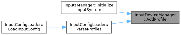 Here is the caller graph for this function:| void InputDeviceManager::AddProfile | ( | std::shared_ptr< InputProfile > | profile | ) |