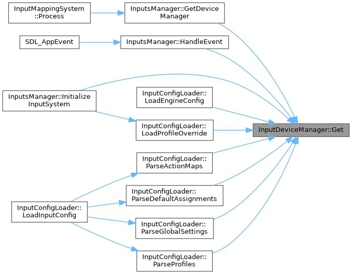 Referenced by InputsManager::GetDeviceManager(), InputsManager::HandleEvent(), InputsManager::InitializeInputSystem(), InputConfigLoader::LoadEngineConfig(), InputConfigLoader::LoadProfileOverride(), InputConfigLoader::ParseActionMaps(), InputConfigLoader::ParseDefaultAssignments(), InputConfigLoader::ParseGlobalSettings(), and InputConfigLoader::ParseProfiles().
