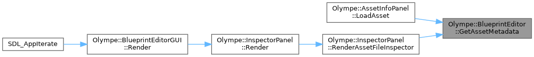 Here is the caller graph for this function:| AssetMetadata Olympe::BlueprintEditor::GetAssetMetadata | ( | const std::string & | filepath | ) |