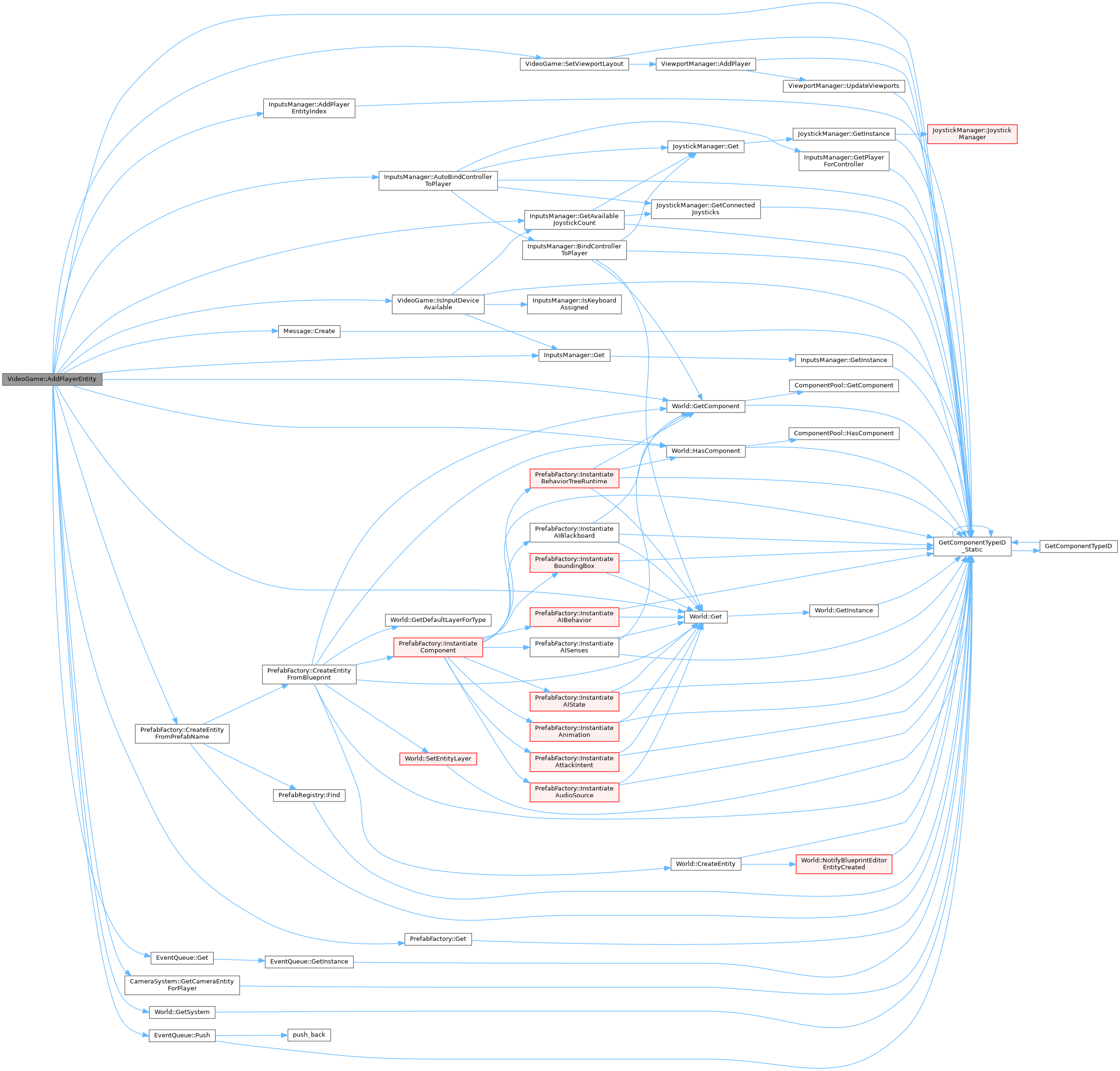 References InputsManager::AddPlayerEntityIndex(), InputsManager::AutoBindControllerToPlayer(), Camera, Controller_data::controllerID, Message::Create(), PrefabFactory::CreateEntityFromPrefabName(), InputsManager::Get(), PrefabFactory::Get(), EventQueue::Get(), World::Get(), InputsManager::GetAvailableJoystickCount(), CameraSystem::GetCameraEntityForPlayer(), World::GetComponent(), GetComponentTypeID_Static(), World::GetSystem(), World::HasComponent(), INVALID_ENTITY_ID, IsInputDeviceAvailable(), m_playerIdCounter, m_playersEntity, Olympe_EventType_Camera_Target_Follow, EventQueue::Push(), SetViewportLayout(), SYSTEM_LOG, and world.