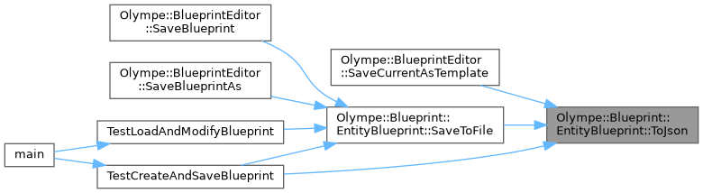 Here is the caller graph for this function:| json Olympe::Blueprint::EntityBlueprint::ToJson | ( | ) | const |