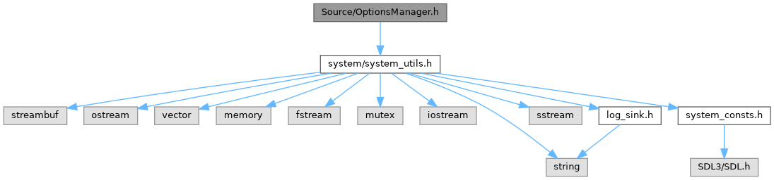 + Include dependency graph for OptionsManager.h: