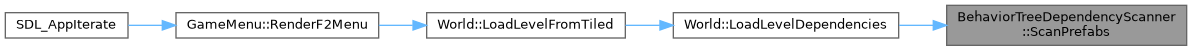 std::vector< BehaviorTreeDependencyScanner::BTDependency > BehaviorTreeDependencyScanner::ScanPrefabs ( const std::vector< std::string > &  prefabNames)
