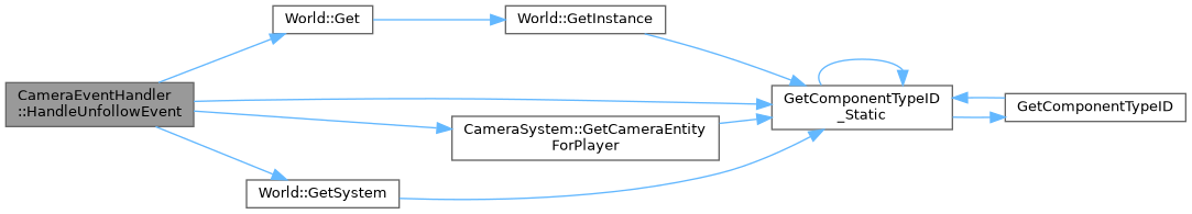 References Camera, Message::Create(), EventQueue::Get(), GetComponentTypeID_Static(), Olympe_EventType_Camera_Target_Unfollow, and EventQueue::Push().