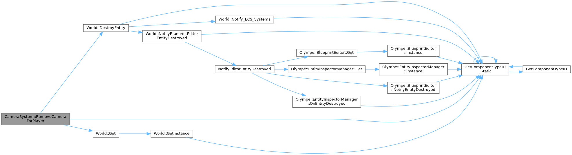 References World::DestroyEntity(), World::Get(), GetComponentTypeID_Static(), m_playerCameras, and SYSTEM_LOG.