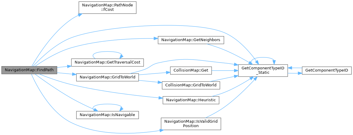 References NavigationMap::PathNode::fCost(), GetComponentTypeID_Static(), GetNeighbors(), GetTraversalCost(), GridToWorld(), Heuristic(), IsNavigable(), IsValidGridPosition(), m_width, and NavigationMap::PathNode::parent.