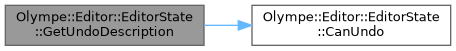 Here is the call graph for this function:| std::string Olympe::Editor::EditorState::GetUndoDescription | ( | ) | const |
