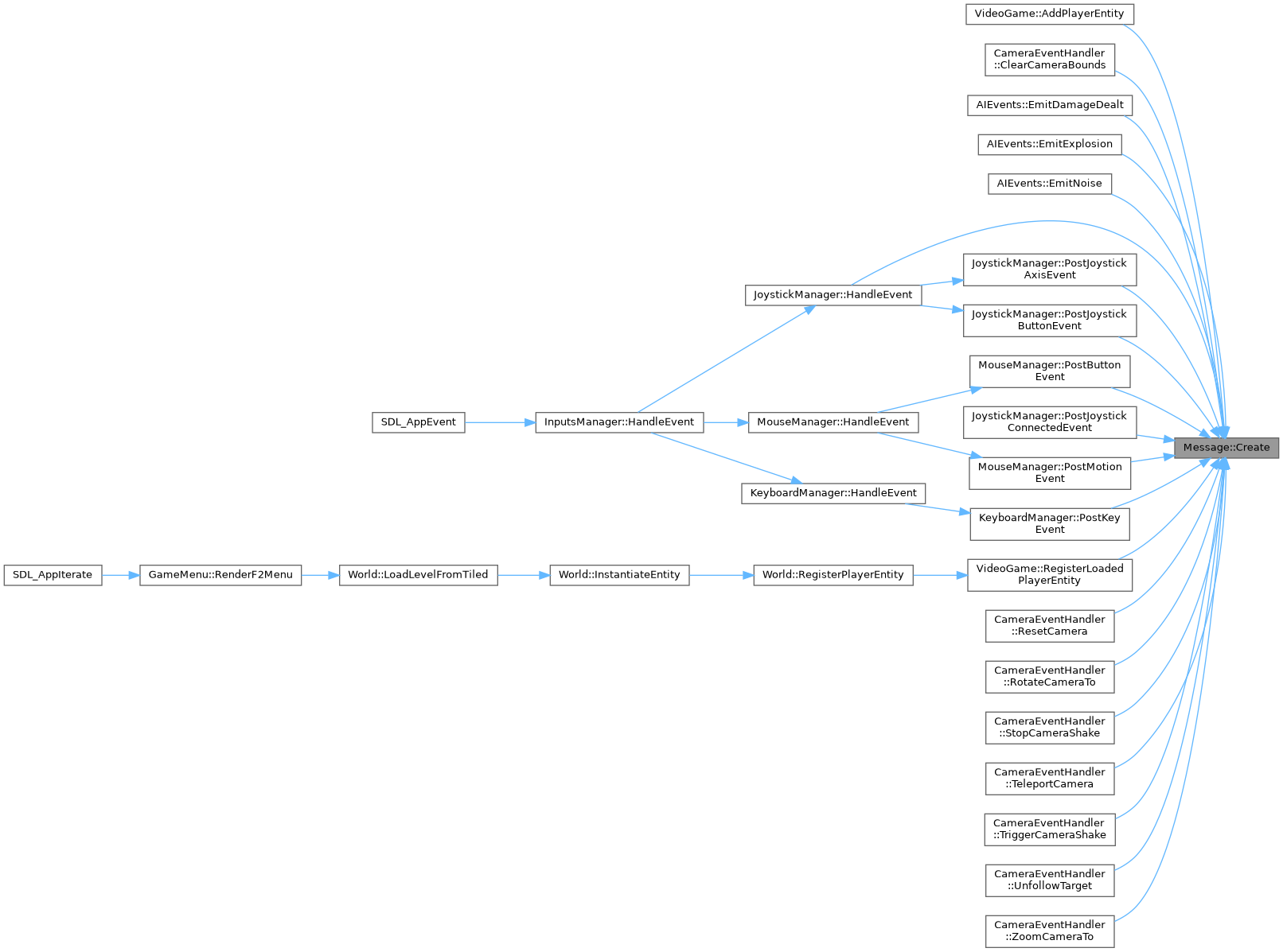 Referenced by VideoGame::AddPlayerEntity(), CameraEventHandler::ClearCameraBounds(), AIEvents::EmitDamageDealt(), AIEvents::EmitExplosion(), AIEvents::EmitNoise(), JoystickManager::HandleEvent(), MouseManager::PostButtonEvent(), JoystickManager::PostJoystickAxisEvent(), JoystickManager::PostJoystickButtonEvent(), JoystickManager::PostJoystickConnectedEvent(), KeyboardManager::PostKeyEvent(), MouseManager::PostMotionEvent(), VideoGame::RegisterLoadedPlayerEntity(), CameraEventHandler::ResetCamera(), CameraEventHandler::RotateCameraTo(), CameraEventHandler::StopCameraShake(), CameraEventHandler::TeleportCamera(), CameraEventHandler::TriggerCameraShake(), CameraEventHandler::UnfollowTarget(), and CameraEventHandler::ZoomCameraTo().
